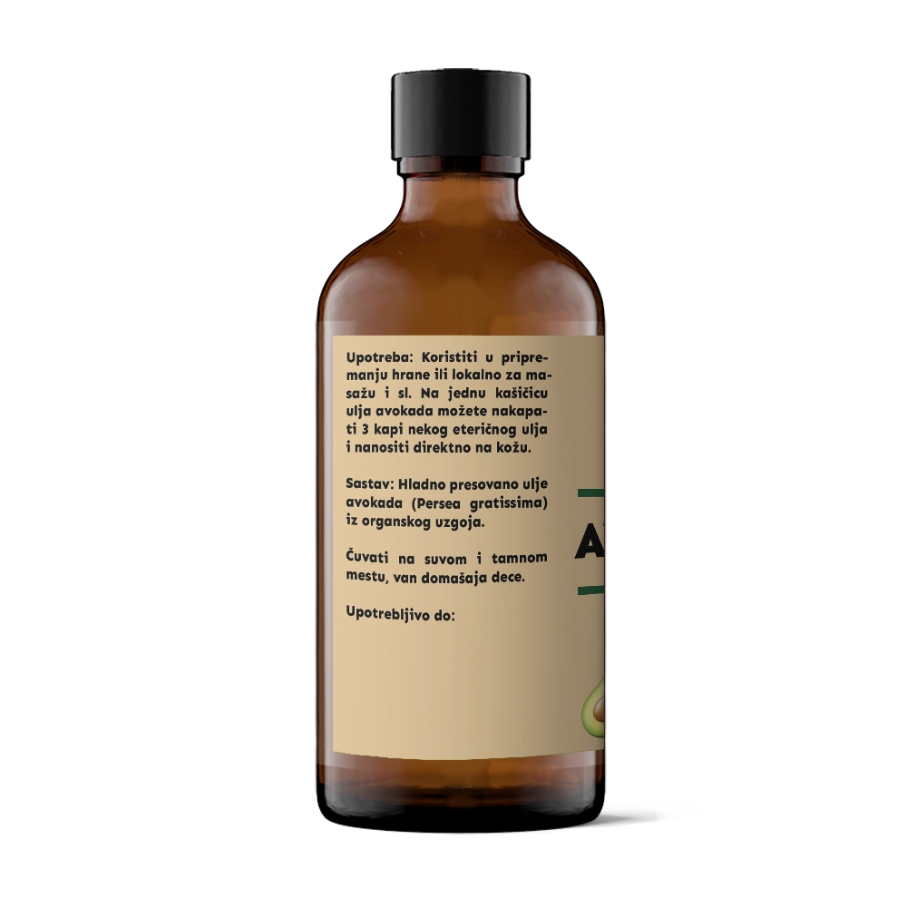 100% organsko, hladno ceđeno ulje avokada iz mesne pulpe
