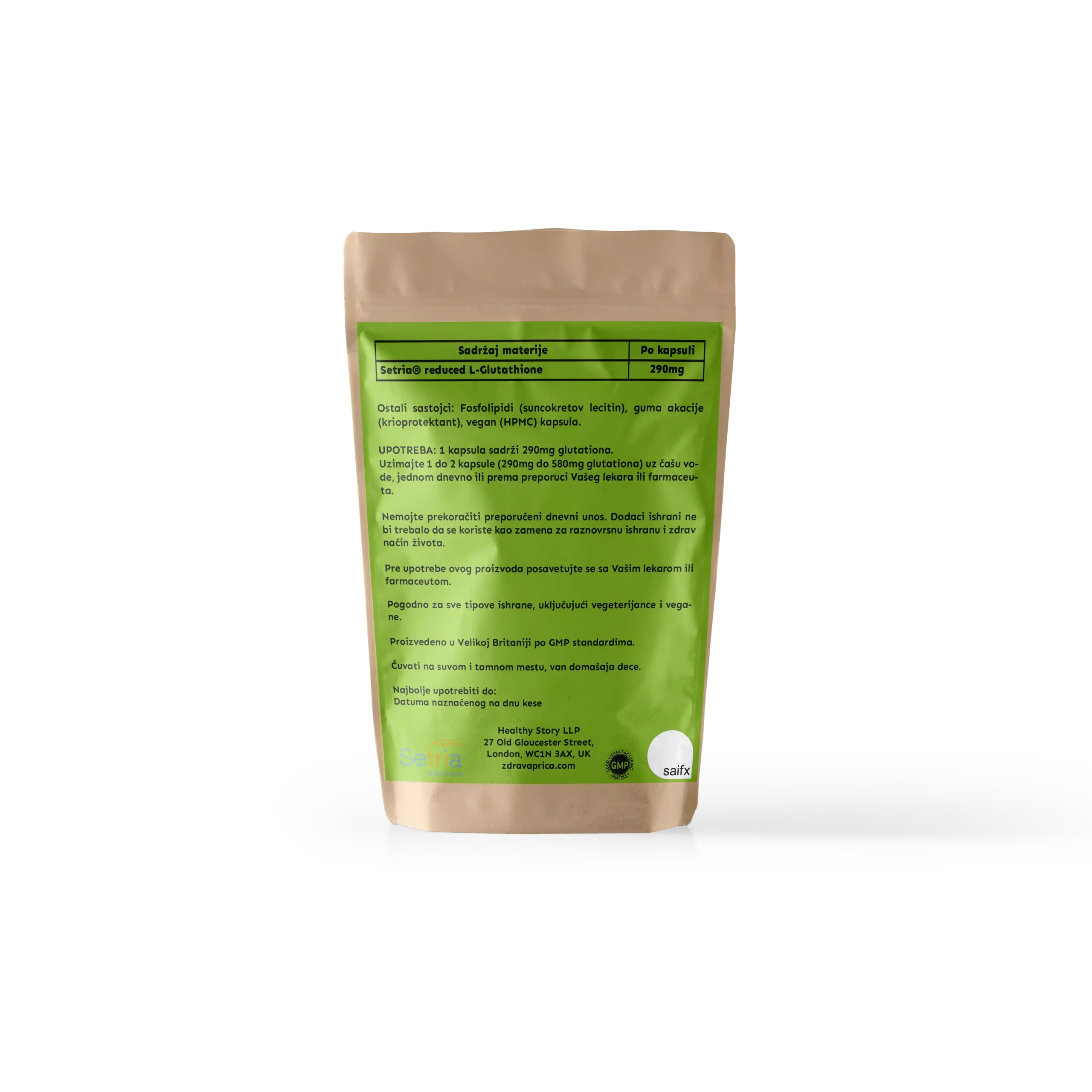 Redukovani liposomalni glutation prah 40% – 500 mg po kapsuli (od čega 200 mg čistog glutationa).