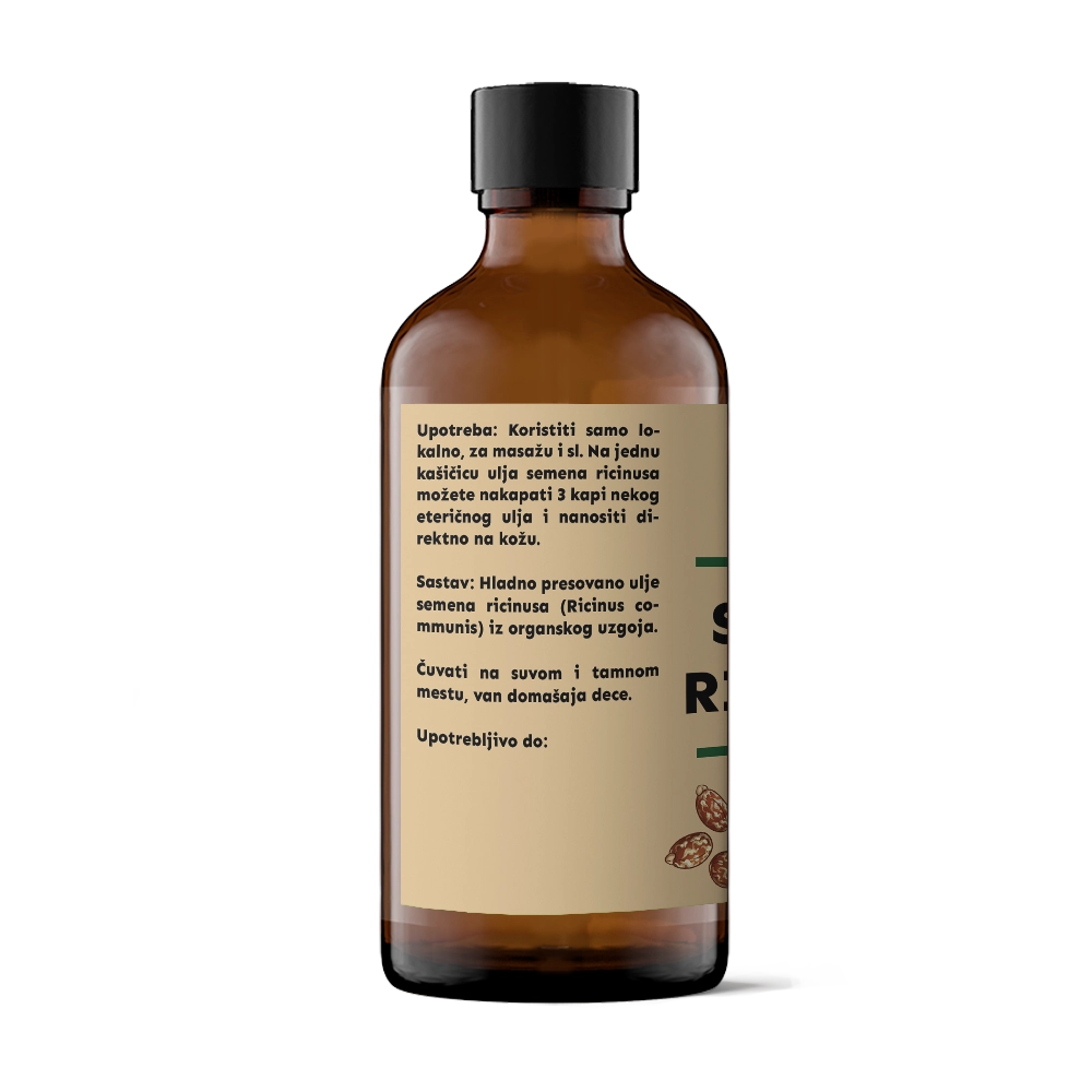• 100% hladno ceđeno, organsko ulje semena ricinusa (Ricinus communis)